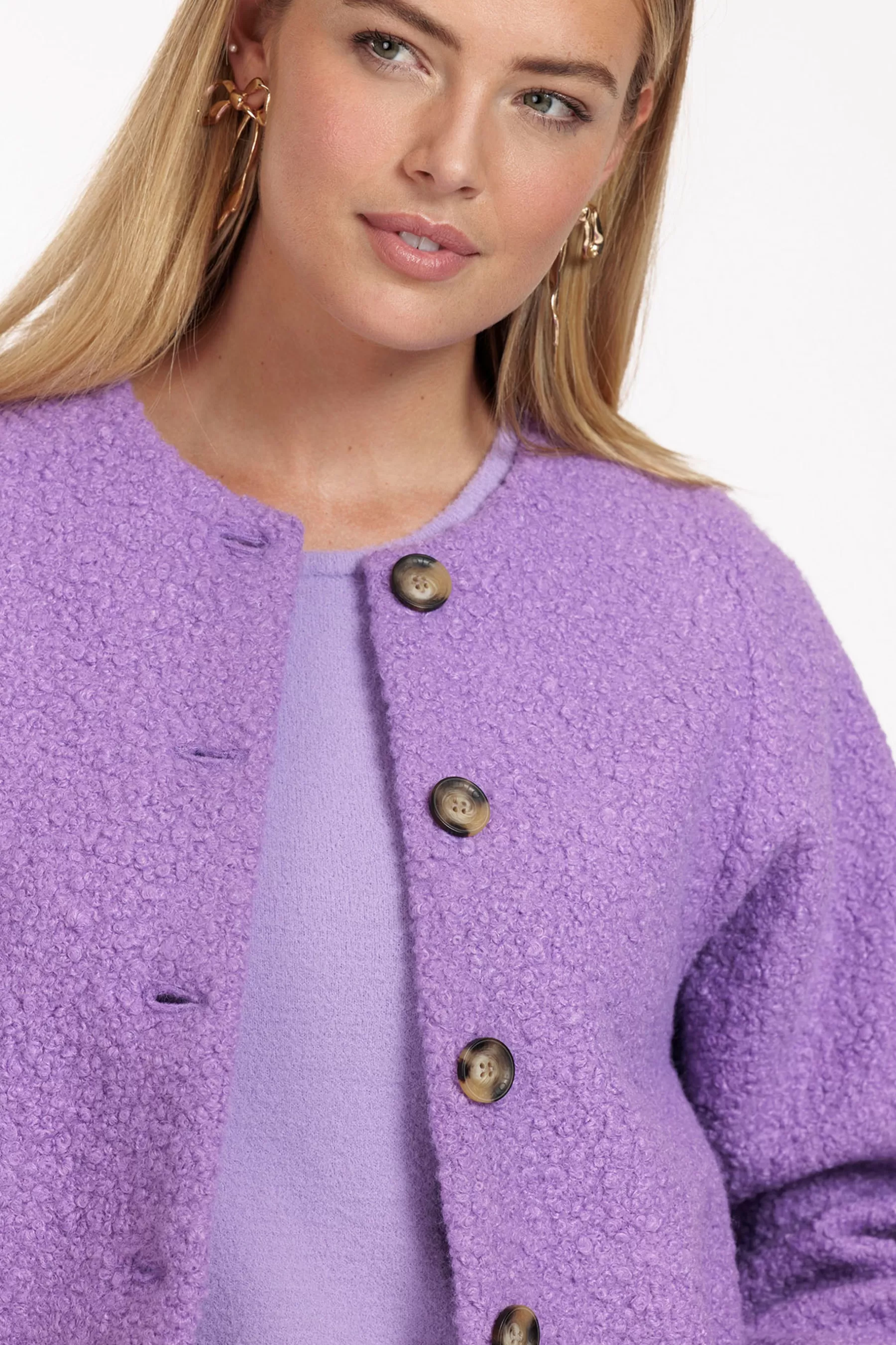 De Fien cooked wool jacket van Studio Anneloes is een zachte en stijlvolle musthave die warmte en comfort combineert met een moderne look. Dit jasje in de kleur Lila geeft je outfit een speelse en frisse uitstraling, terwijl de teddy-achtige textuur zorgt voor een heerlijk knus gevoel. Met zijn ronde hals en gemêleerde knopen is dit jasje een perfecte balans tussen comfort en elegantie.