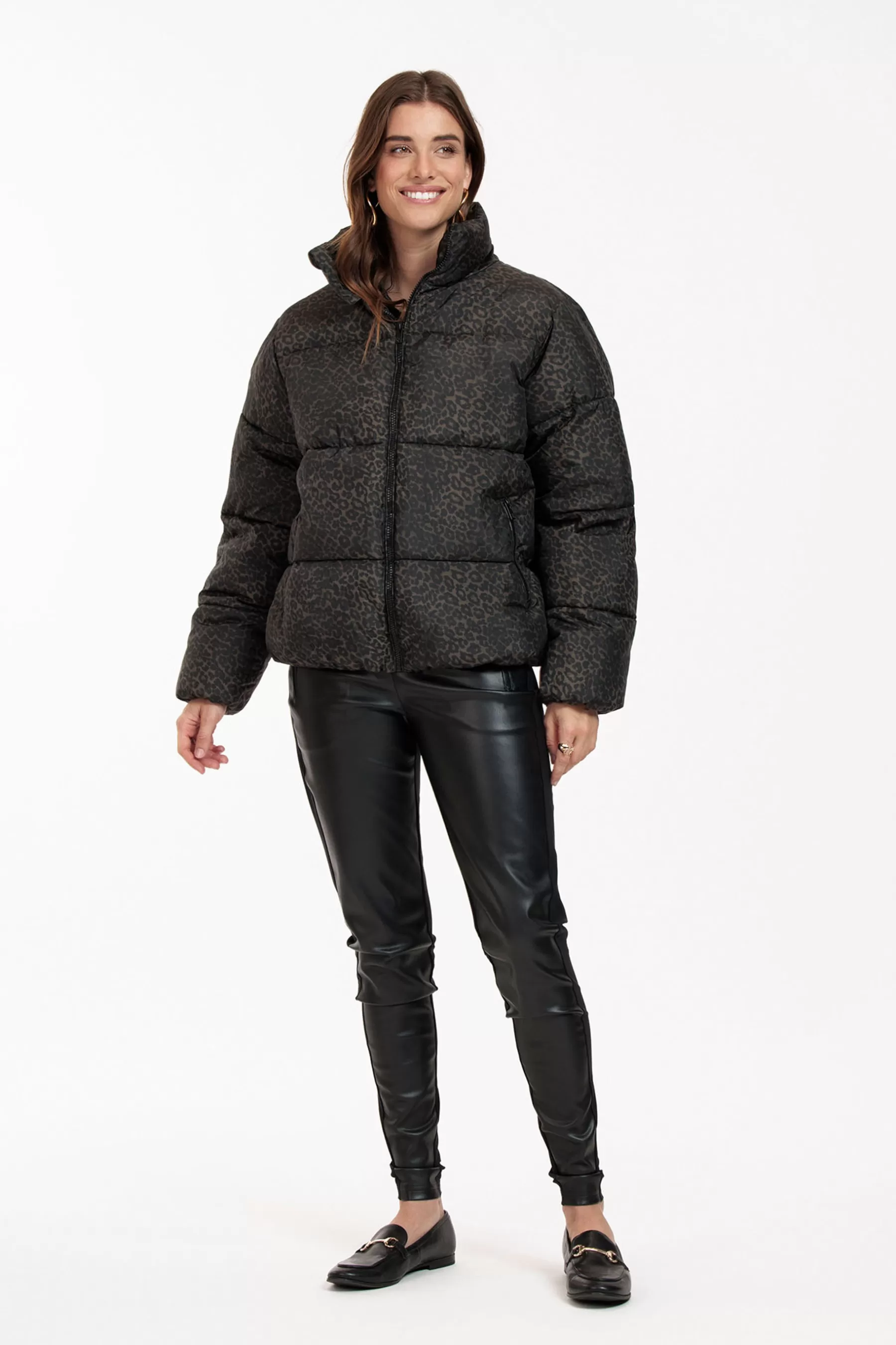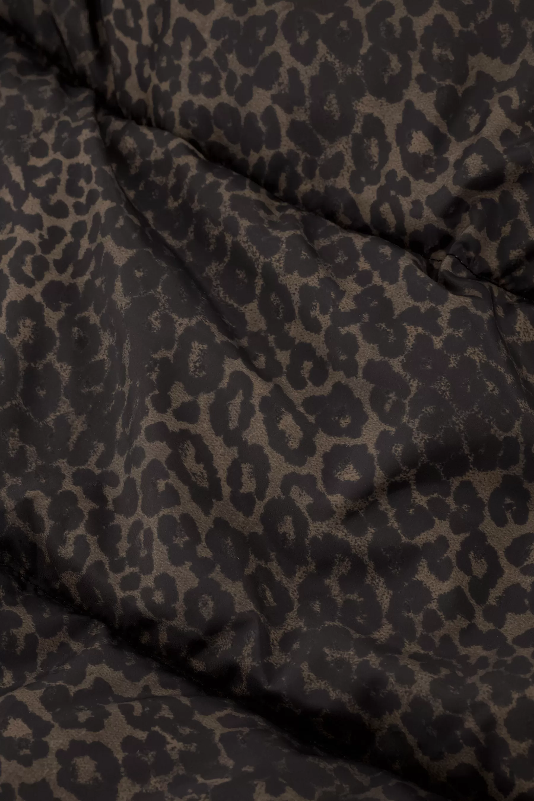 Deze jas met subtiele leopardprint in de kleuren New Army en Black combineert functionaliteit en stijl op een unieke manier. Het 100% gereycled polyester materiaal zorgt voor een comfortabele en warme pasvorm, terwijl het lichtgewicht en onderhoudsvriendelijke karakter ideaal is voor dagelijks gebruik. De print is subtiel genoeg om makkelijk te combineren, maar voegt toch net dat beetje extra flair toe aan je look. De hoge kraag biedt bescherming tegen de kou, en de steekzakken zijn handig voor al je essentials. Een perfecte jas voor een chique, maar toch speelse winterse outfit.