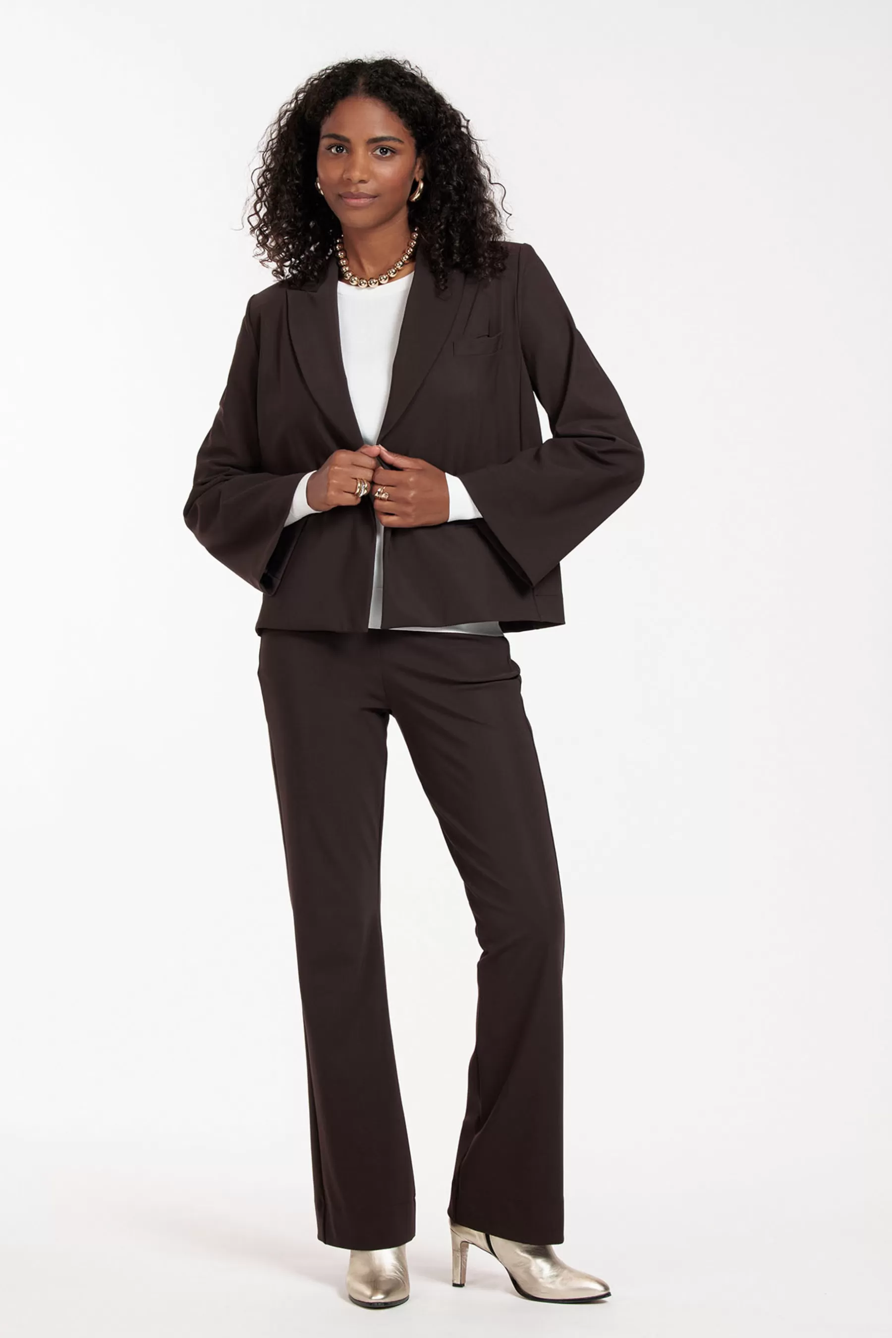 De Lette bonded blazer is een veelzijdig item dat gemakkelijk te combineren is met zowel zakelijke als casual outfits. Draag hem over een blouse en combineer met de Anna bonded trousers in Espresso voor een professionele uitstraling, of kies voor een jeans en T-shirt voor een meer ontspannen look. De diepe espressokleur en het verfijnde ontwerp maken deze blazer tot een tijdloze en stijlvolle toevoeging aan je garderobe.