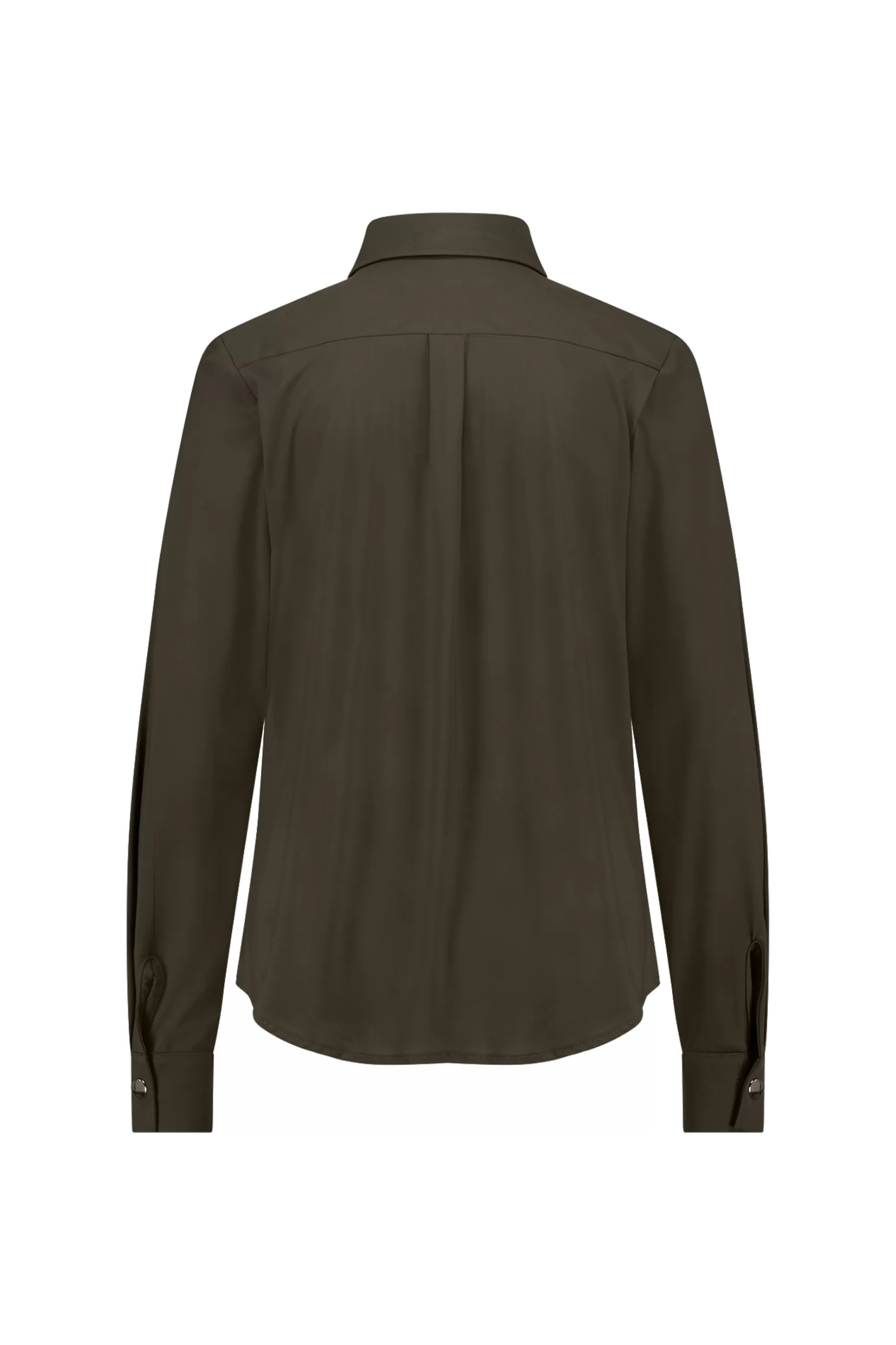 Deze blouse in de kleur New Army is ideaal voor zowel casual als formele gelegenheden. De Light Travelstof zorgt voor een luchtige en comfortabele pasvorm die de hele dag mooi blijft zitten. Deze stof kreukt niet, droogt snel en heeft een lichte stretch, waardoor je altijd verzorgd voor de dag komt. De gouden knopen voegen een luxe detail toe aan de blouse, terwijl de klassieke kraag en lange mouwen met manchetsluitingen voor een tijdloze uitstraling zorgen.