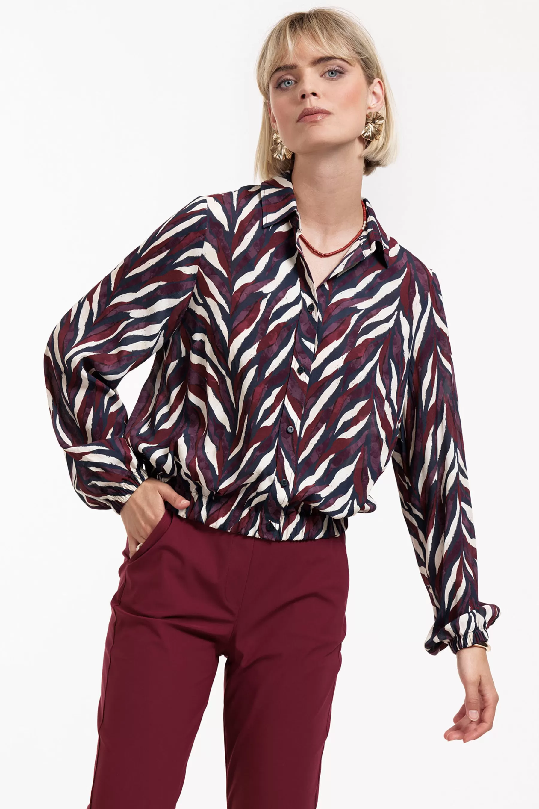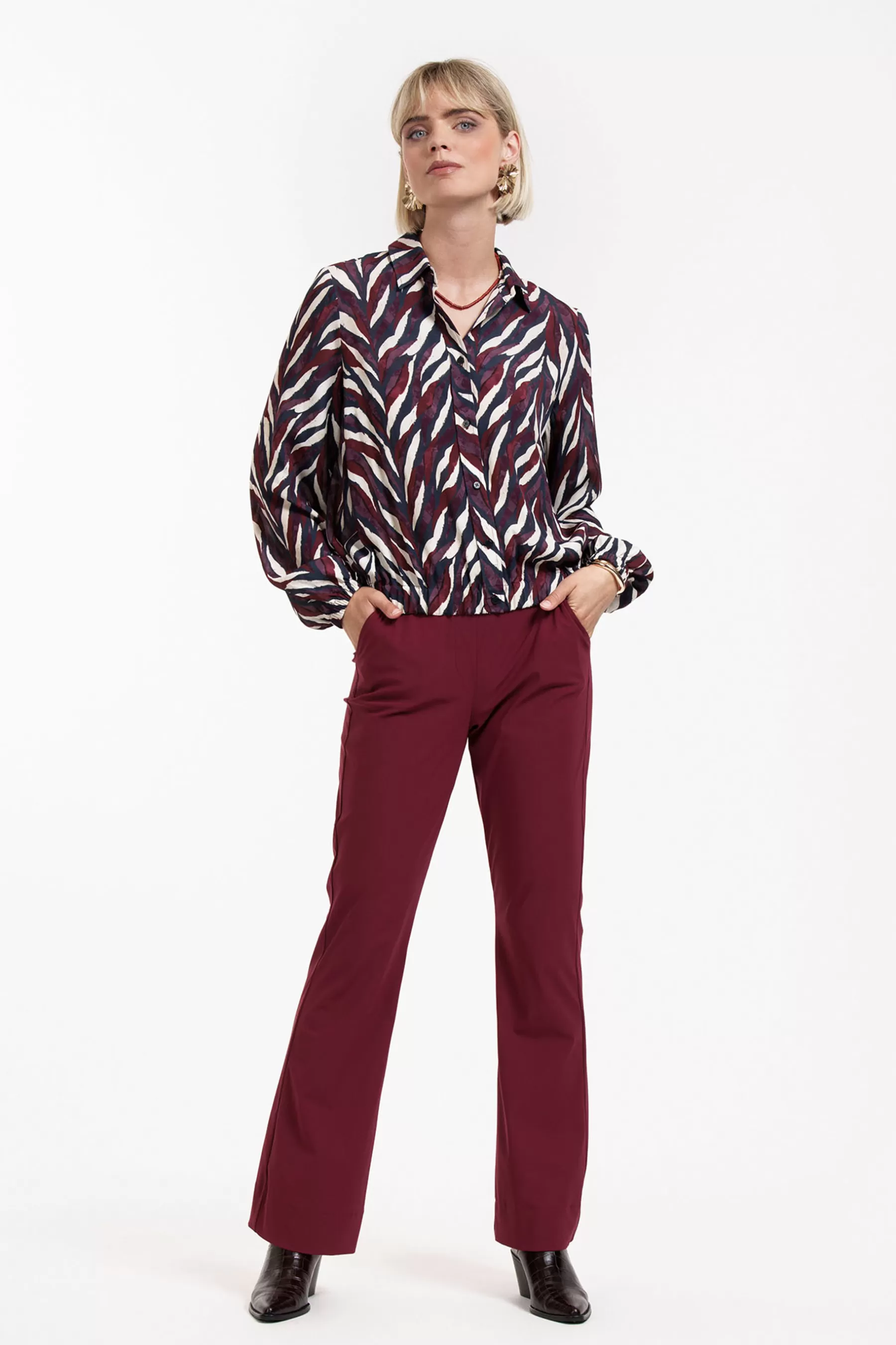 De Jonny leaves crepe blouse van Studio Anneloes is een gedurfde en elegante keuze. Deze blouse met klassieke kraag en opvallende bladerenprint in de tinten Kit en Merlot straalt verfijning uit. De luchtige crepestructuur en doorschijnende stof geven een vrouwelijke touch, terwijl de knoopsluiting, elastische tailleband en manchetten zorgen voor een comfortabele pasvorm. Perfect om een statement mee te maken!