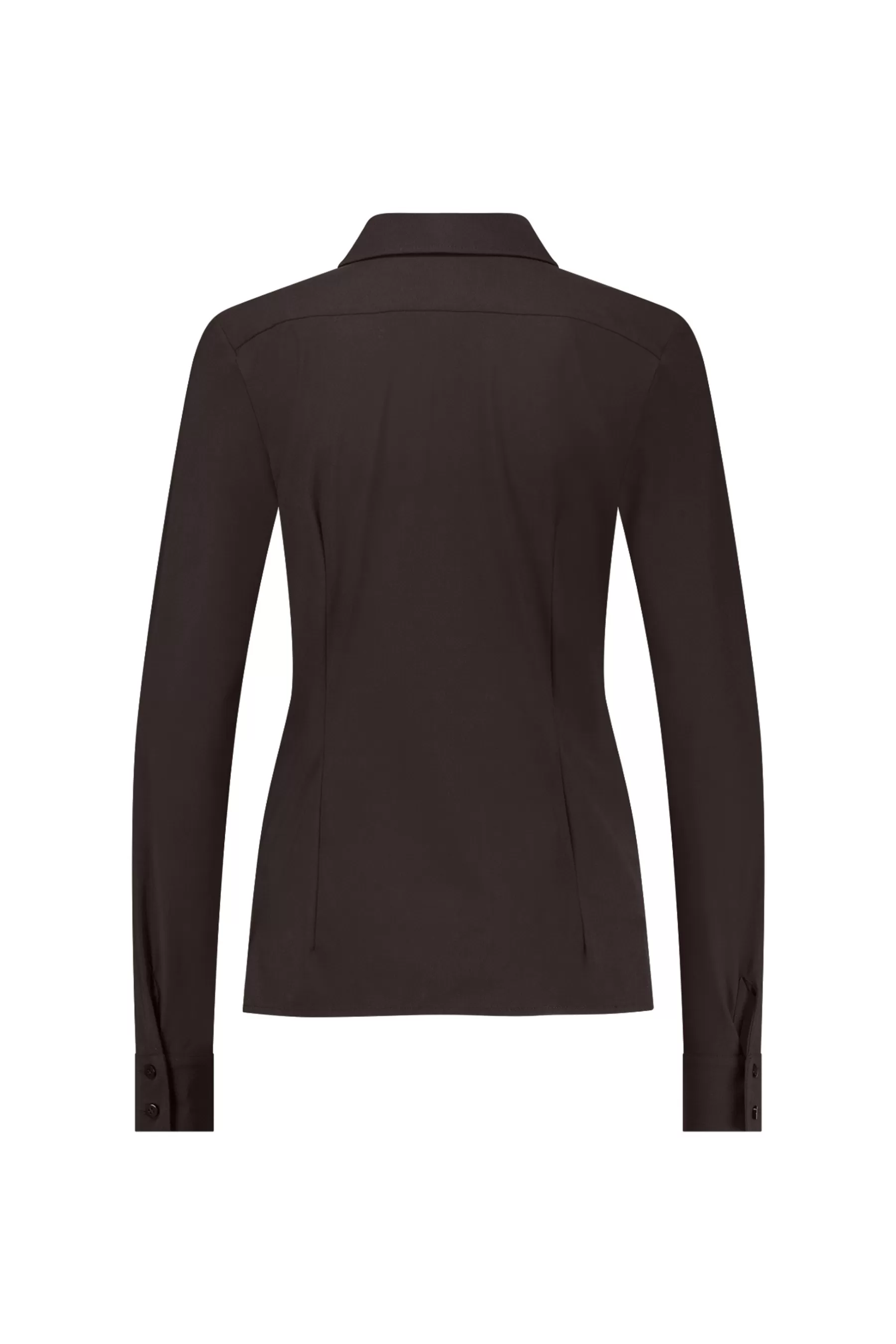 Deze Espresso-kleurige blouse past perfect binnen de aardse en luxe uitstraling van de Saddle Chic collectie. De diepe kleur en de elegante details maken deze blouse ideaal om te dragen tijdens zowel formele als informele gelegenheden. De lichte travelstof voelt zacht en soepel aan, is kreukvrij en eenvoudig in onderhoud, wat het een ideale keuze maakt voor de vrouw met een drukke levensstijl.