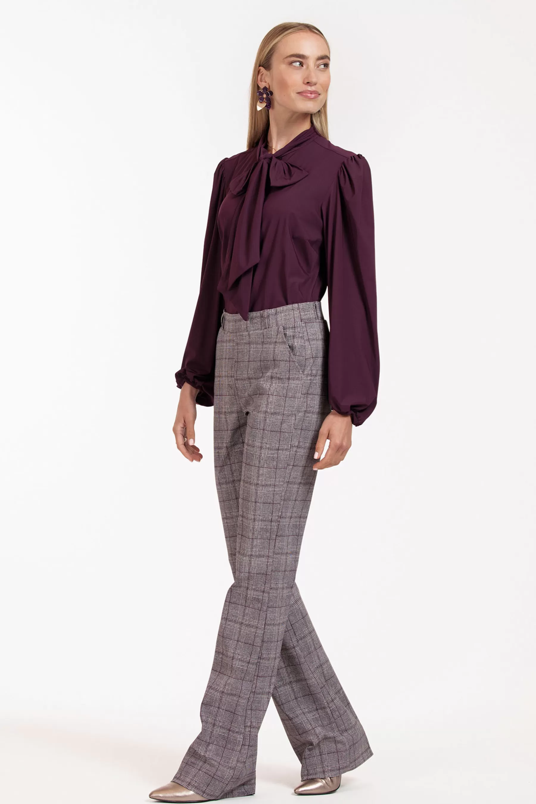 De Poppy bow blouse in de kleur Blackberry is een elegante keuze voor elke gelegenheid. Deze blouse is gemaakt van Studio Anneloes’ Light Travelstof, een hoogwaardige mix van 73% polyamide en 27% elastaan, wat zorgt voor een comfortabele stretch en een kreukvrije uitstraling, ideaal voor een drukke dag of een avondje uit. De getailleerde fit accentueert het figuur, terwijl de wijde mouwen en de sjaalkraag een verfijnde, vrouwelijke uitstraling geven.
