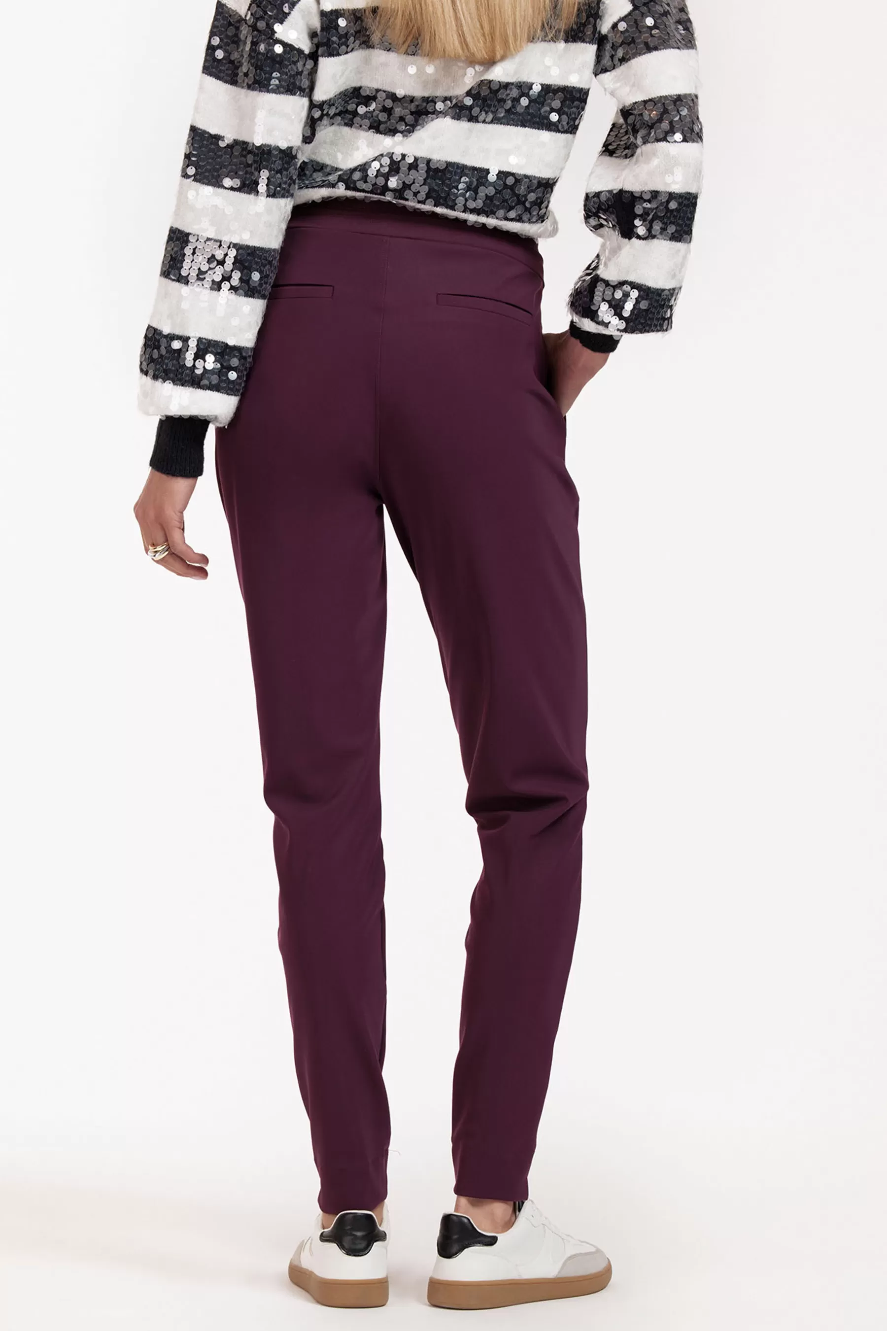 De Downstairs bonded trousers van Studio Anneloes in de kleur Blackberry combineert stijl en comfort voor de vrouw die van moderne elegantie houdt. Met een rijke, diep paarse tint en een slim fit pasvorm, is deze broek perfect om je silhouet te flatteren zonder in te leveren op comfort. Deze broek komt uit de ‘Talk of the Town’ collectie van Studio Anneloes, die draait om krachtige en diepe kleuren zoals Blackberry, Merlot en Dark Blue. Hiermee kun je moeiteloos een stijlvolle en zelfverzekerde look creëren, zowel op kantoor als daarbuiten.