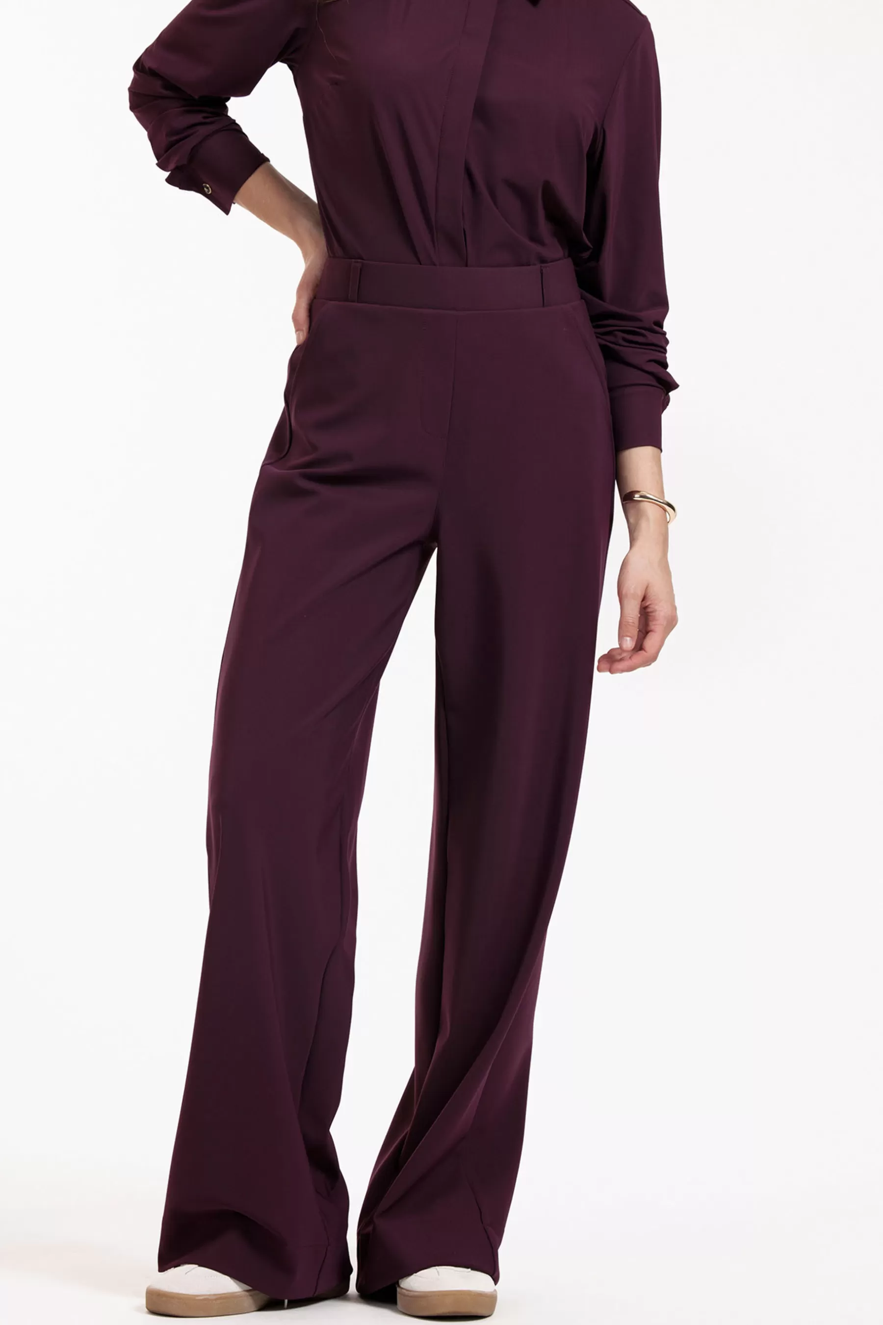 De Lexie bonded trousers in Blackberry van Studio Anneloes is een onmisbaar item voor de modebewuste vrouw die houdt van comfort en stijl. Deze broek, gemaakt van Bonded Travelstof (73% polyamide en 27% elastaan), biedt een comfortabele stretch en een kreukvrije afwerking, waardoor je de hele dag door een verzorgde look behoudt. Dankzij het high-waisted model en de elastische tailleband zit de broek mooi aangesloten en geeft hij een flatterend silhouet. De Lexie bonded trousers is voorzien van praktische steekzakken, wat de broek zowel stijlvol als functioneel maakt.