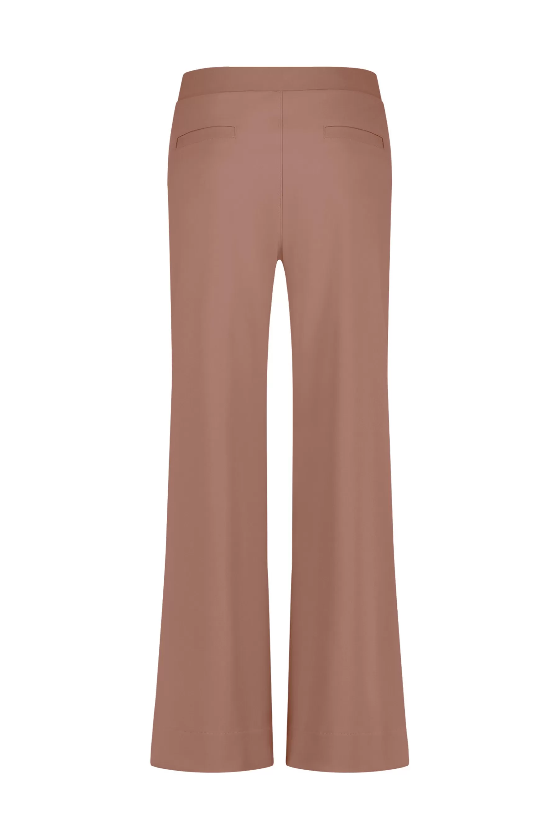 Gemaakt van bonded travelstof, biedt deze broek niet alleen een chique uitstraling, maar is hij ook praktisch in onderhoud. De stof kreukt niet, droogt snel en is eenvoudig te verzorgen, wat ideaal is voor vrouwen met een drukke levensstijl. Na het wassen kun je de broek eenvoudig ophangen en indien nodig op lage temperatuur strijken om de vorm te behouden.