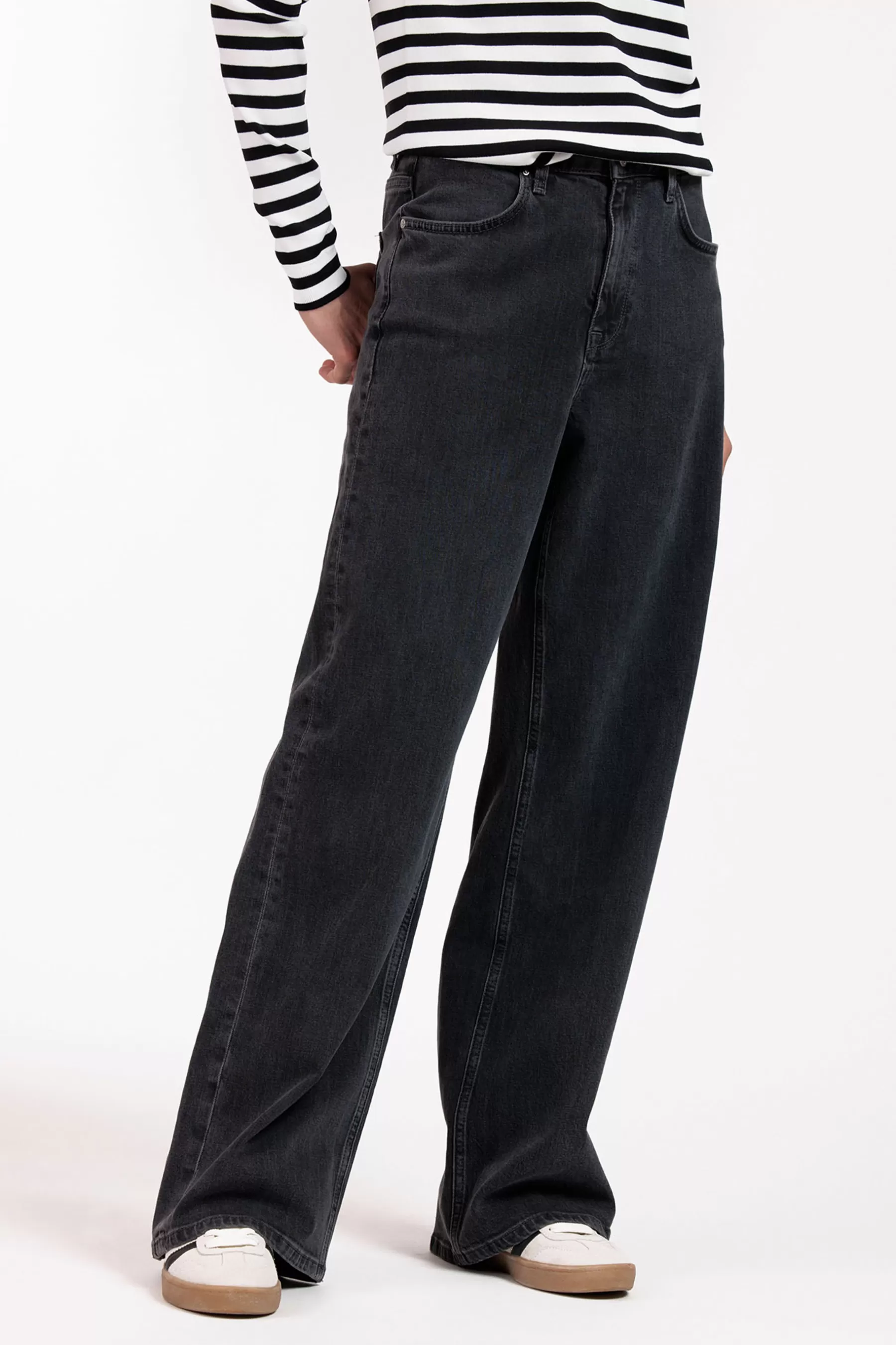 De Lexie denim trousers past perfect in de ‘BACK TO WORK’ collectie van Studio Anneloes, die draait om comfort meets functionaliteit meets fashion. Draag deze broek met een elegante blouse voor een zakelijke look of combineer hem met een casual top voor een ontspannen outfit. De tijdloze kleur Black maakt het eenvoudig om te mixen en matchen met verschillende stijlen en accessoires.
