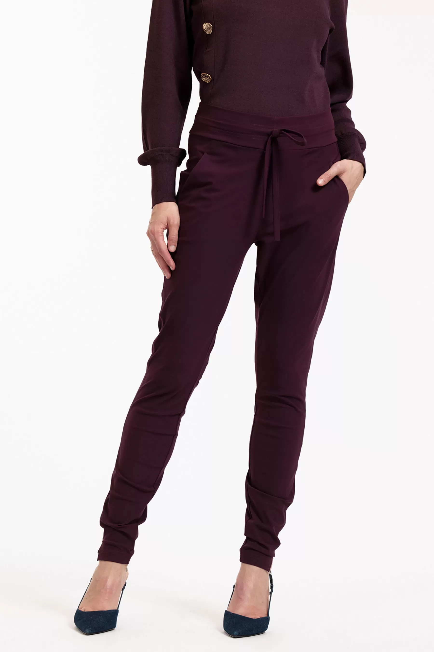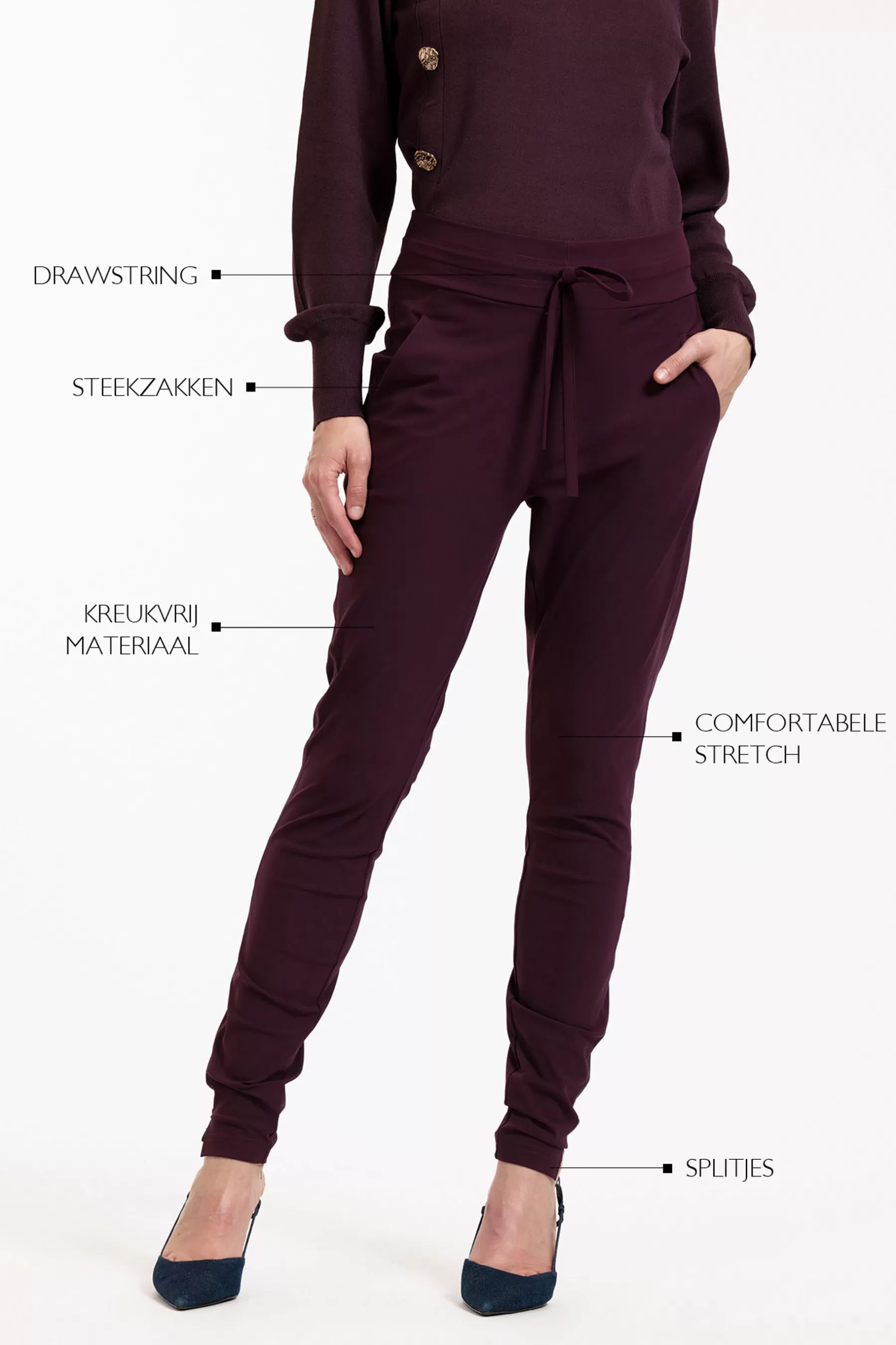 De Stairdown trousers van Studio Anneloes in Blackberry is een stijlvolle en veelzijdige broek die zich moeiteloos aanpast aan elke gelegenheid. Gemaakt van Heavy Travelstof (74% polyamide en 26% elastaan), biedt deze broek een comfortabele stretch en blijft hij kreukvrij, wat hem ideaal maakt voor dagelijks gebruik en lange dagen. De zachte, diepe kleur Blackberry is perfect voor een luxe uitstraling en laat zich makkelijk combineren met andere items uit de collectie.
