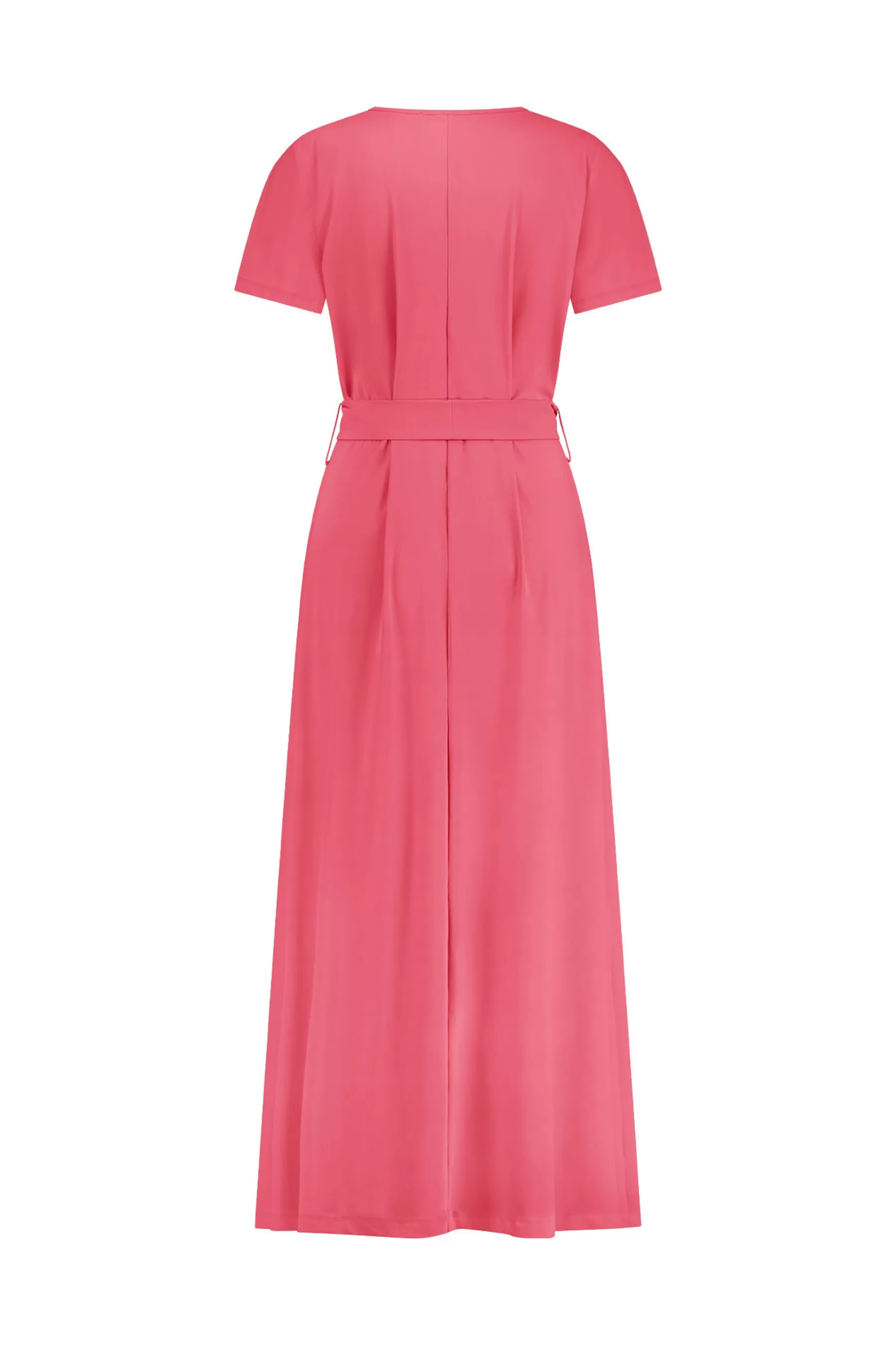 Deze watermeloen kleurige jurk straalt frisse elegantie en veelzijdigheid uit. De regular fit biedt een comfortabele en flatterende pasvorm, perfect voor elke gelegenheid. De korte mouwen geven de jurk een moderne en luchtige look, terwijl het bijpassende strikceintuur je taille mooi accentueert. Melon is de perfecte kleur voor de zomer, waardoor je outfit meteen opvalt.