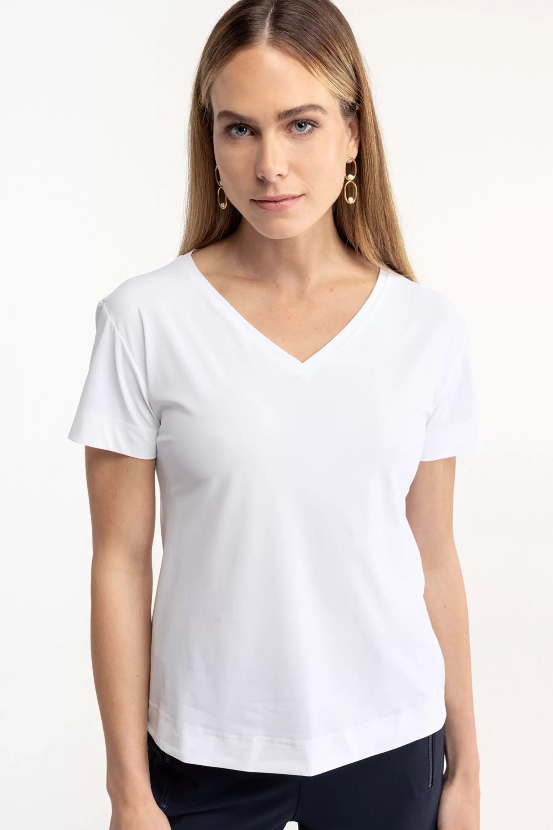 Het Roller shirt van Studio Anneloes is een veelzijdige basic die niet mag ontbreken in je garderobe. Dit shirt in een frisse witte kleur heeft een regular fit die comfortabel zit en mooi aansluit op het lichaam. Gemaakt van Medium Travelstof, biedt het Roller shirt een perfecte balans tussen stevigheid en draagcomfort. De V-hals en korte mouwen geven het shirt een casual maar toch verfijnde uitstraling, terwijl de getailleerde pasvorm je figuur subtiel accentueert.