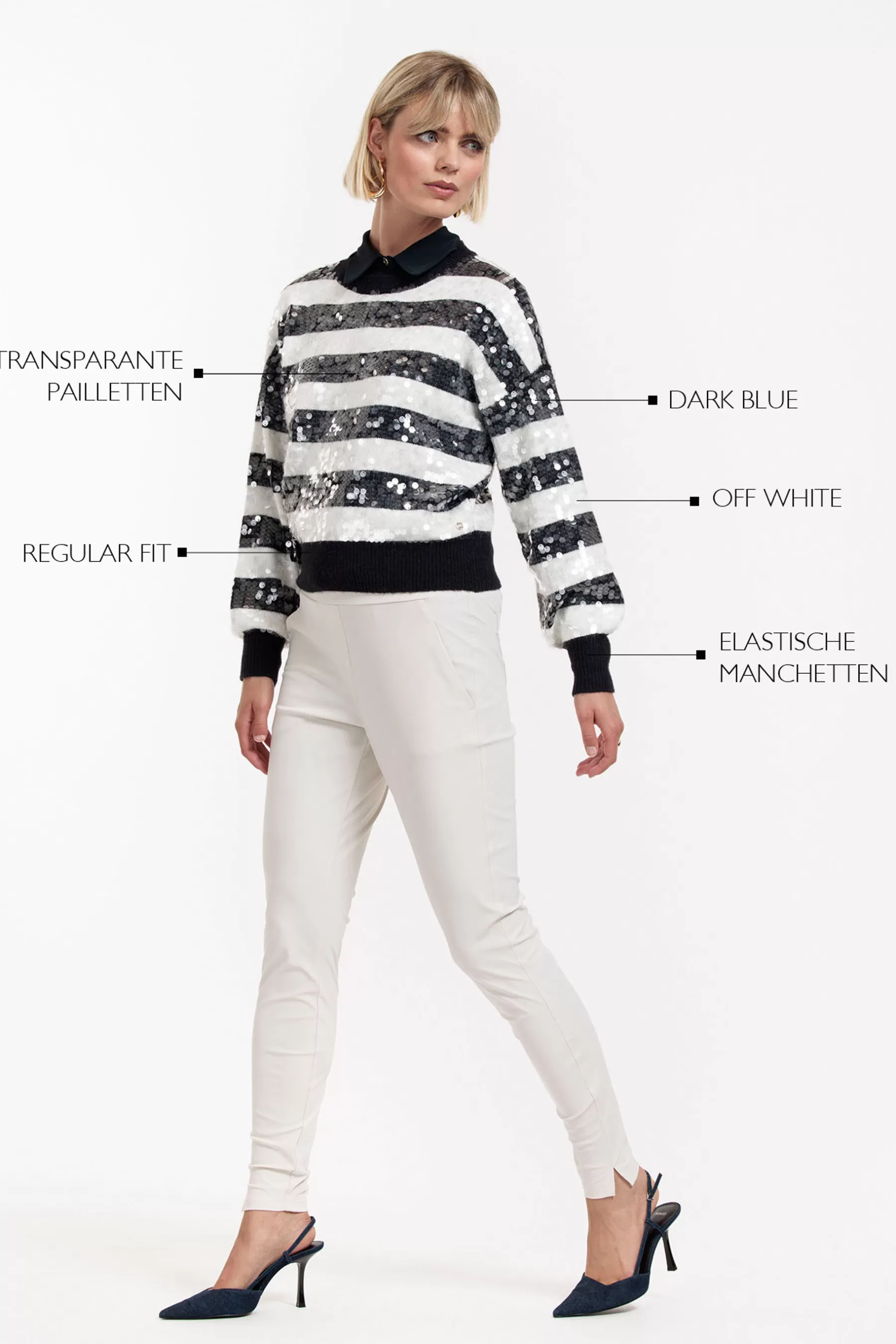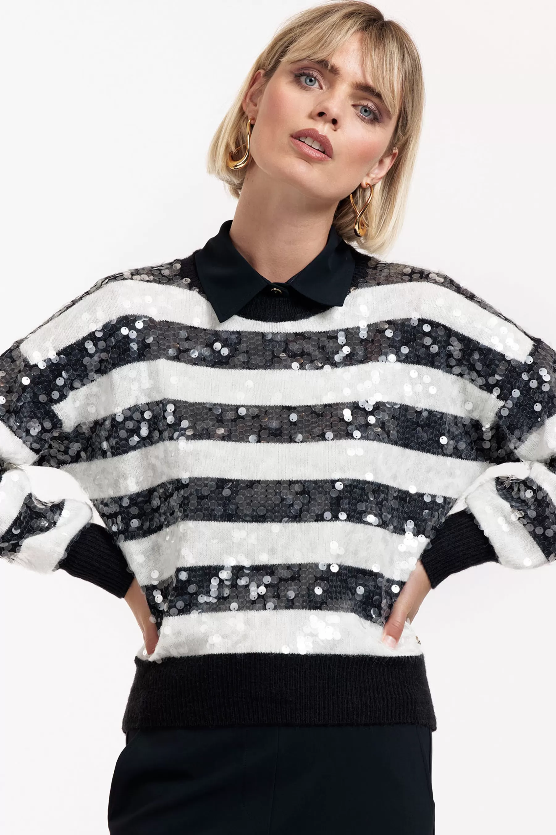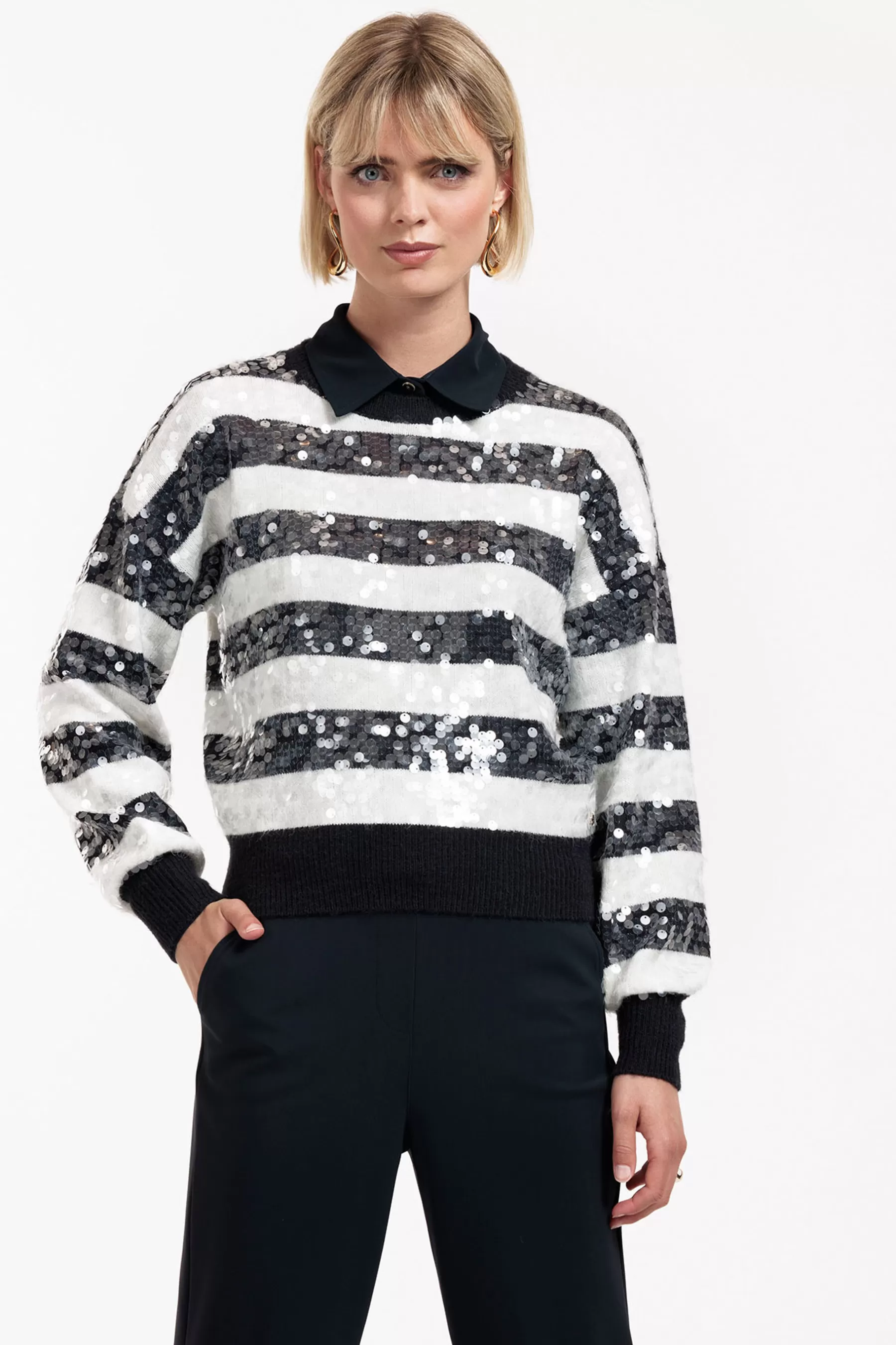 Of je nu op zoek bent naar een subtiele glans voor overdag of een opvallend accent voor een avondje uit, de Lilly sequins pullover biedt precies de juiste balans tussen comfort en stijl.